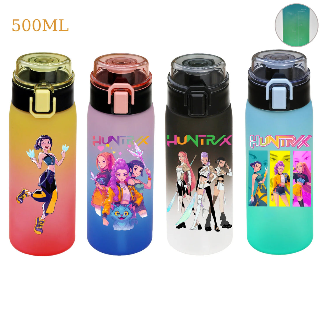 500ML KPop Demon Hunters Sports Water Cup Huntrix Portable Rope Drinking Bottle Hiking Travel Gym Fitness Jugs Kid Birthday Gift