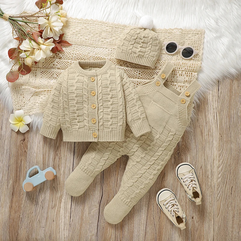 Newborn Baby Clothes Set Knitted Toddler Sweater +Jumpsuit Hat Sleeveless 3pcs Attire Infant Boys Girls Cardigan+Romper Cap 0-9M