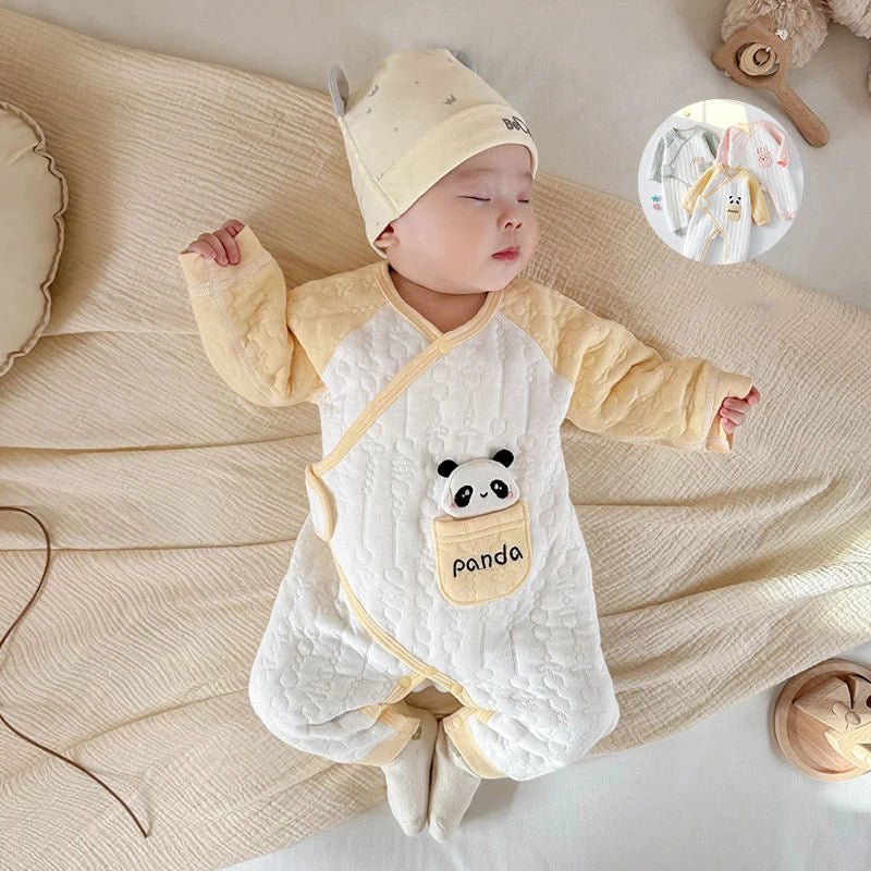 Baby Romper Autumn 0-6 Months Baby Three-layer Warm Clothing Newborn Cute Cartoon Crawling Suit