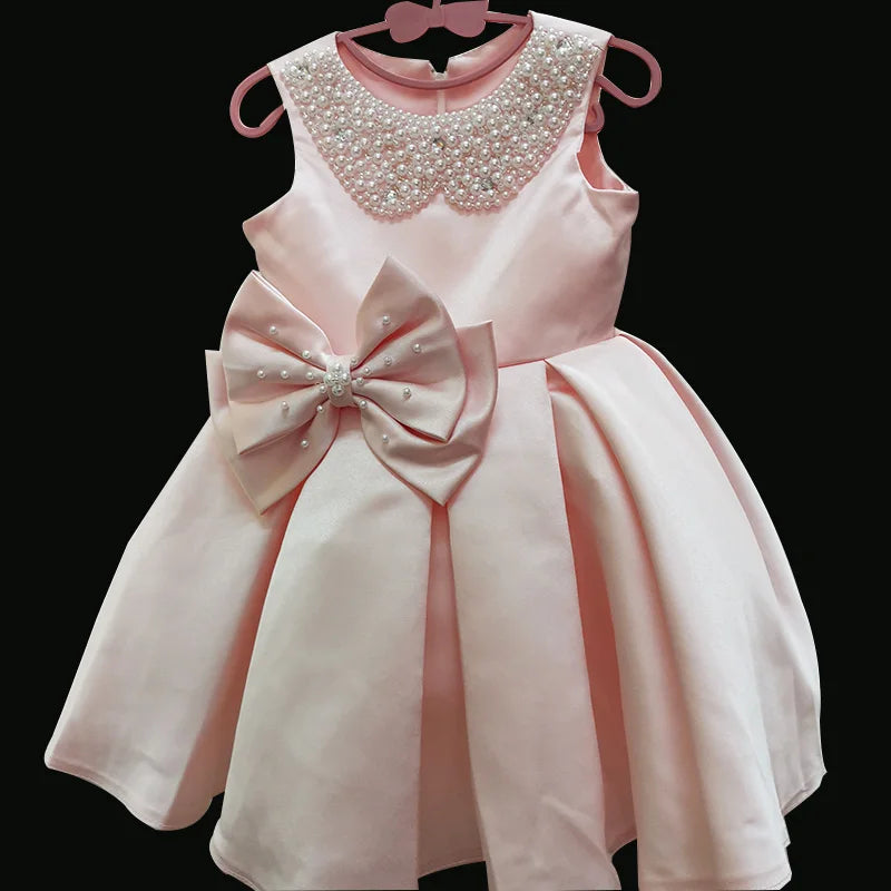 Girls Embroidered Bow Dress (Ages 3–12) – Princess Birthday Party Evening Gown | Backless Flower Girl Bride Dress