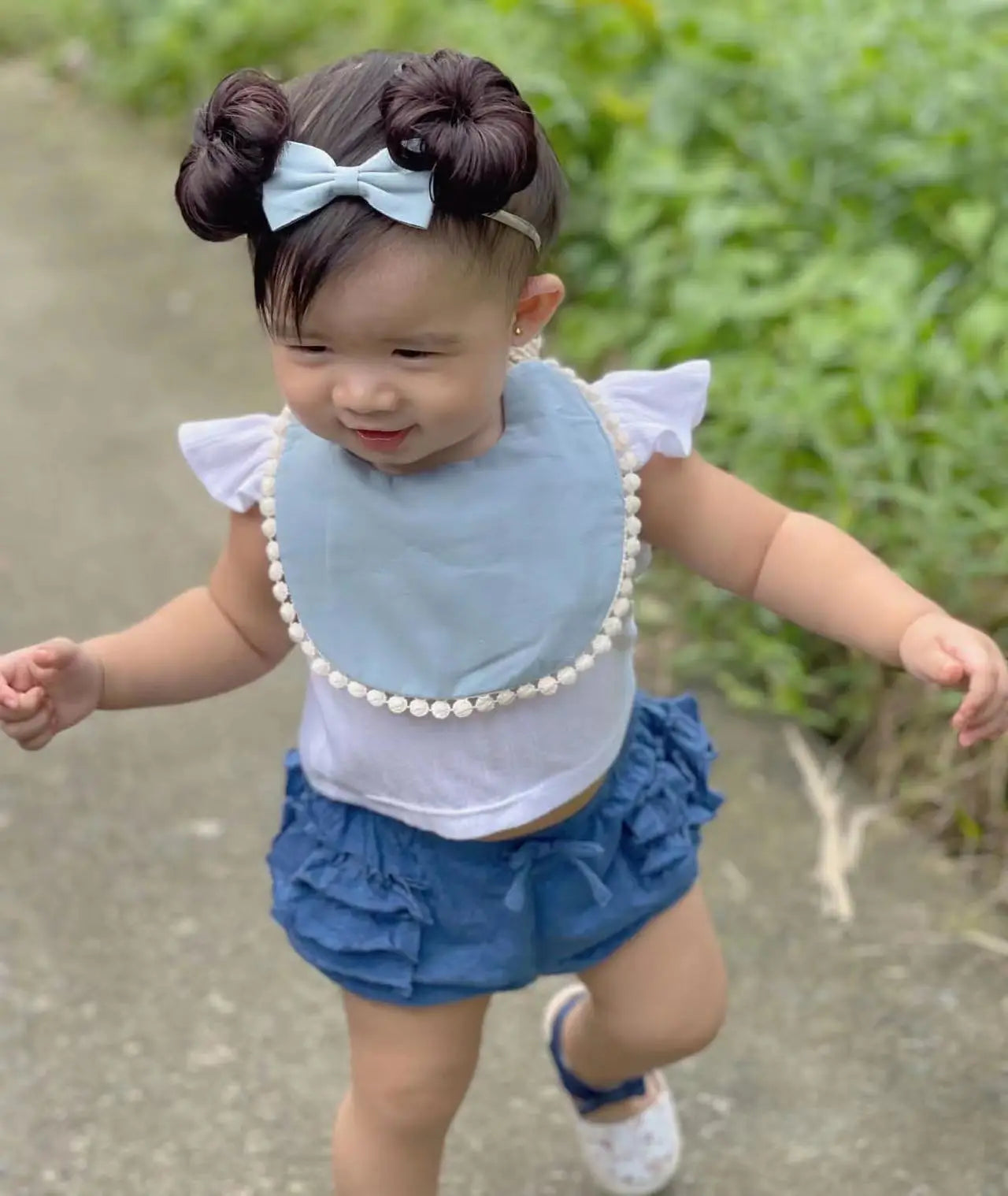2Pcs/Set Muslin Cotton Baby Boy Girl Bib Bamboo Waterproof Feeding Burp Clothes Bow Hair Nylon Bands Solid Saliva Towel Scarf