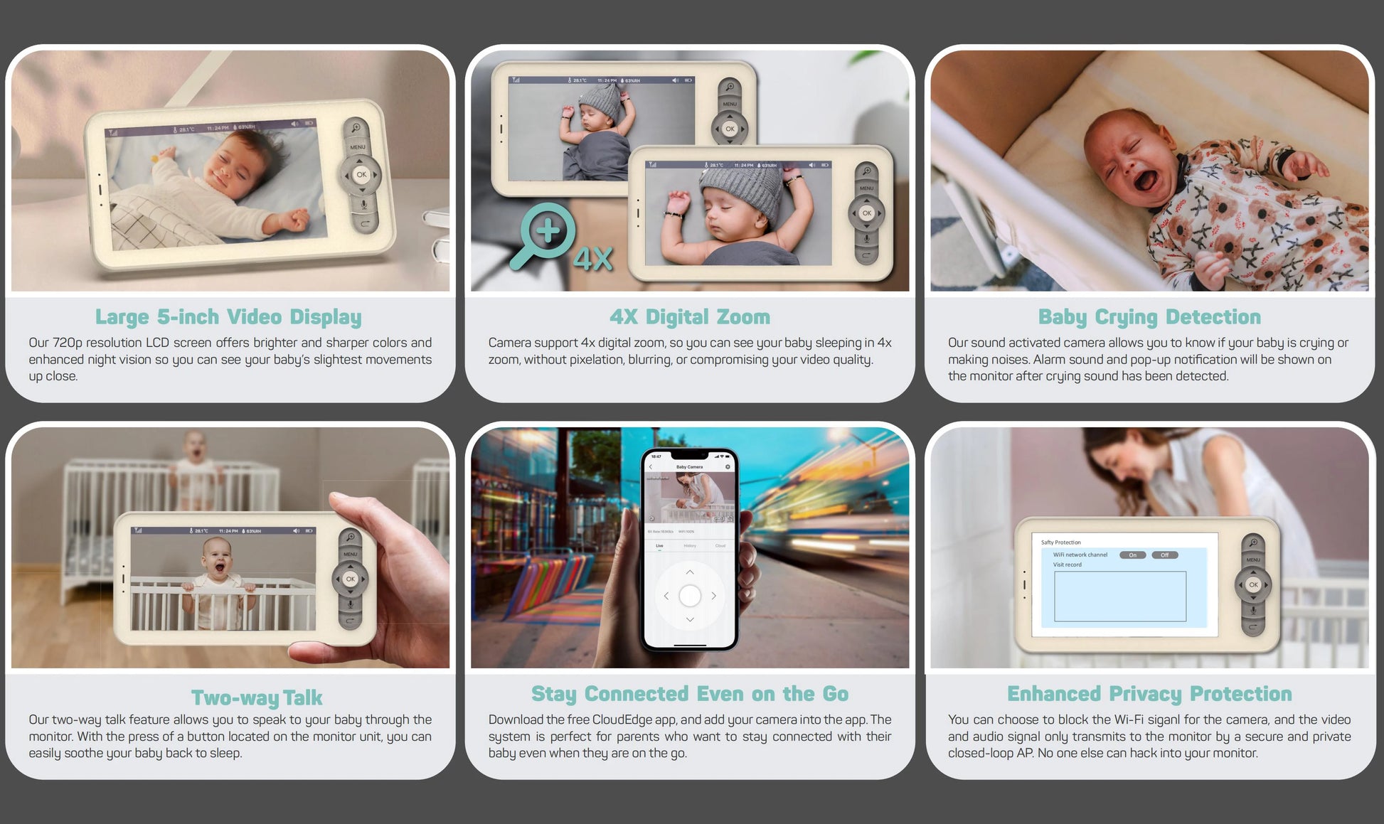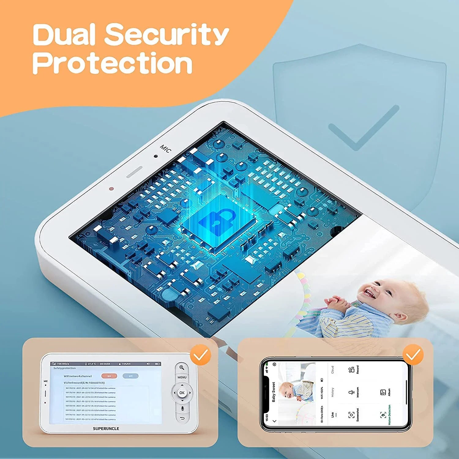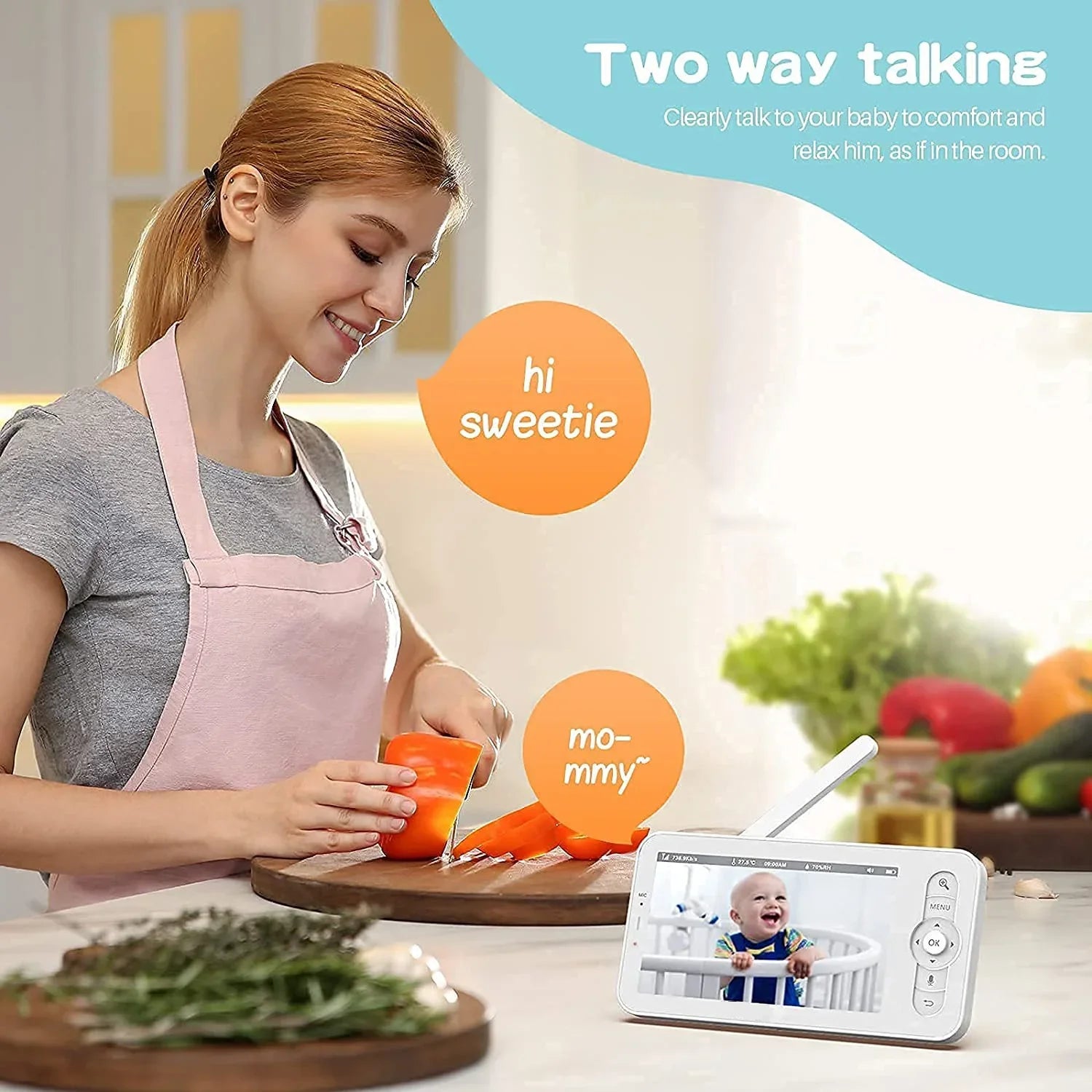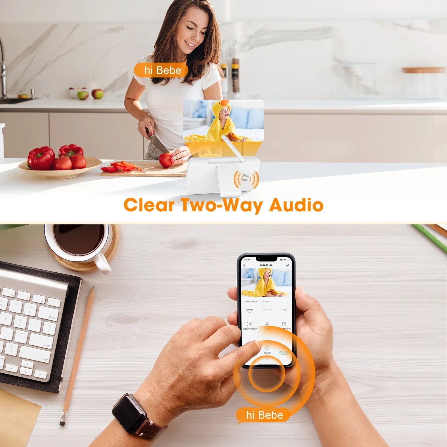 5" Baby Monitor Camera IR Night Vision 360° Rotation with Phone App Motion Monitoring Auto Tracking Bebe Nanny Built in Battery